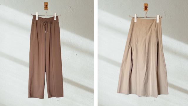 Rakuten Fashionで購入したワイドパンツ(左)とKEYUKAのスカート(右)