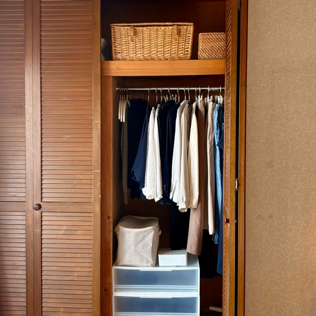 ちなみに仕事着はユニクロがメインで、画像のクローゼットはの真ん中部分が仕事着になります。
